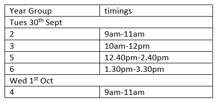 We are taking our Yr 2,3,4,5,6 pupils to St Benedict Biscop church for a harvest experience on Tues 30th Sept and Wed 1st Oct. If you are able to